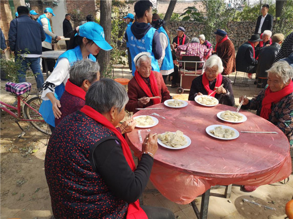 表演结束后,志愿者们搀扶着爷爷奶奶们到吃饭的地方,并端上一盘盘热腾腾的饺子,重阳节志愿服务活动也在一片祥和欢乐的氛围中结束。