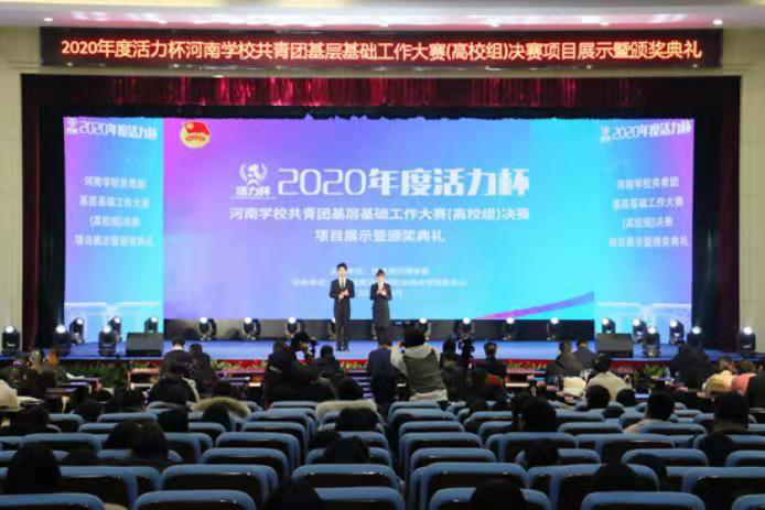 12月22日-23日,由团省委主办、必赢官方网站承办的2020年度“活力杯”河南省学校共青团基层基础工作大赛(高校组)决赛在学生活动中心举行。23日下午,共青团河南省委副书记王笃波、校长祝玉华、校党委副书记刘卫锋等出席优秀项目展示及颁奖典礼,团省委相关部门领导、全省各高校团委书记,获奖选手及学校师生代表300余人参会。