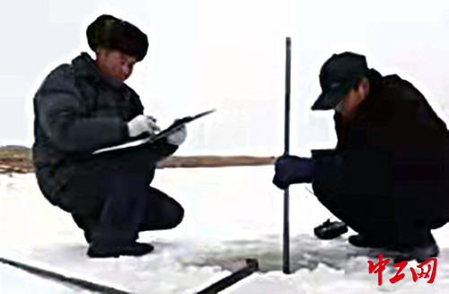 到了冬季,要进行测流就需要先把厚达两米多的积雪和坚冰清除掉,打冰机冻得无法工作,他们就靠人工打冰。