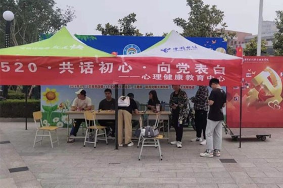 青春飞扬,红心向党。为庆祝中国共产党成立100周年,5月20日,必赢官方网站心理健康教育中心在扬帆广场面向全校学生举行“520·共话初心·向党表白”主题活动,800余人参加了此次活动。