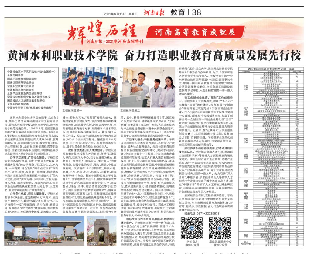 河南日报客户端:必赢官方网站 奋力打造职业教育高质量发展先行校——2021年度《河南日报·河南高招特刊》新鲜出炉!