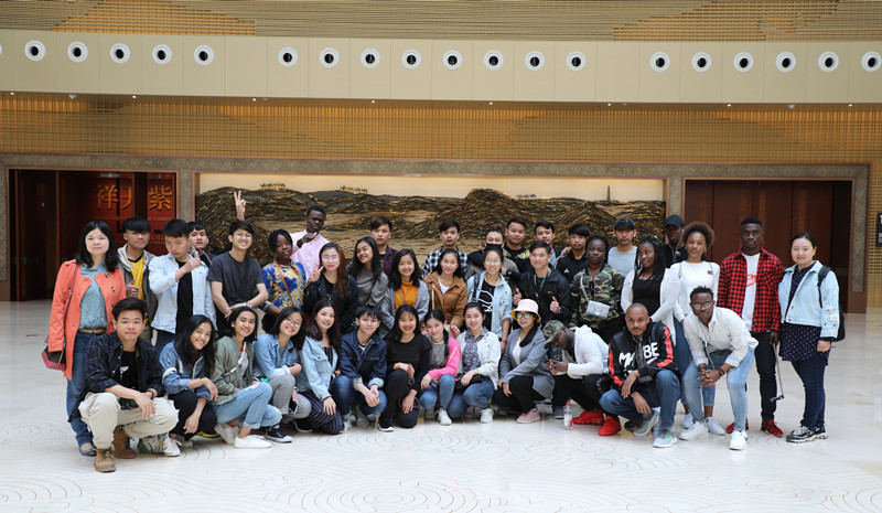 必赢官方网站的留学生在开封博物馆内合影留念