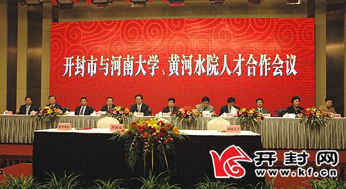 祁金立说,开封市与河南大学、黄河水院人才合作会议,是我市经济社会发展中的一件大事,对于促进开封经济社会科学发展、快速发展必将产生重要而深远的影响。开封是七朝古都,全国首批历史文化名城,也是中原经济区建设的核心城市和郑汴一体化的重要一翼。特别是2011年开封市十次党代会召开以来,全市上下正全力打好“五大攻坚战”,努力推动开封快速崛起,实现这个宏伟目标,归根结底,离不开人才这个重大支撑和有力保障。高校在高端人才聚集、产业发展聚集、提升区域创新能力、促进区域经济社会发展方面作用独特,这次开封市与河南大学、黄河水院签订人才合作框架协议,就是要进一步加强本地高校的联系,充分发挥高校在科研教学、人才智力上的优势,助推开封经济社会发展。通过双方的共同努力,最终形成高校为我市经济社会发展提供人才智力支持,我市为高校提供优惠政策、科研课题、实训基地等良性合作机制,推动双方共同发展。