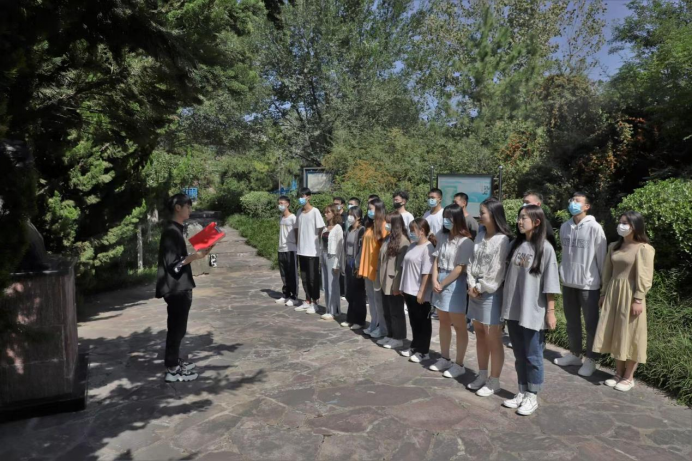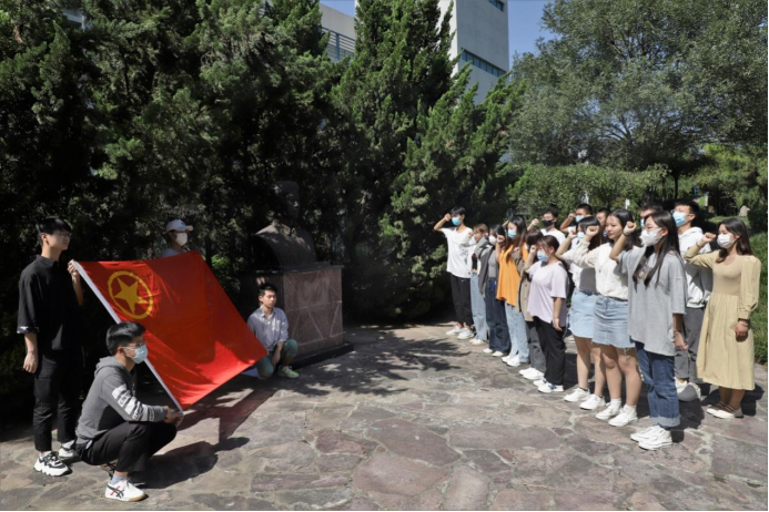 活动最后,红旗渠精神传承者协会成员、部分学生干部在烈士雕像旁,高举右拳,面向团旗,重温入团誓词。学子们纷纷表达了对校友吴祖太的深切缅怀和思念,表示要学习优秀校友吴祖太的感人事迹,继承吴祖太的伟大遗志,弘扬红旗渠精神,在党的百年华诞之际,学习党在革命、建设、改革等各个历史时期的伟大奋斗史,筑牢初心使命,为实现中华民族伟大复兴的中国梦贡献青春力量。