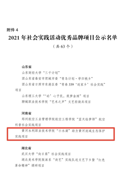 我校“小水滴”助力黄河流域生态环境保护项目获评2021年全国社会实践优秀品牌项目