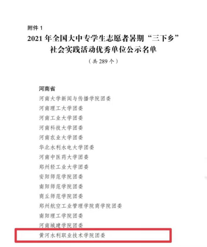 我校团委获评2021年全国大中专学生志愿者暑期“三下乡”社会实践活动优秀单位
