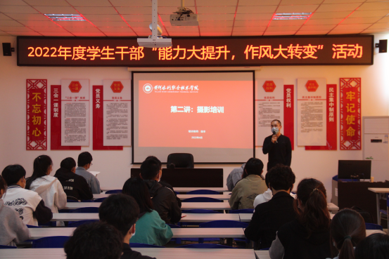 本次培训内容丰富详实,案例丰富,具有很强的指导性、针对性和实用性,通过培训使团学干部进一步增强掌握摄影技巧,提升摄影能力,有效增强团学干部工作能力和专业素养。下一步,校团委将以“团学干部能力大提升、作风大转变”活动为契机,陆续开展党史、团史理论培训、政治能力学习培训、基础业务能力培训、调查实践能力培训、作风建设专题培训等,全面提升我校团学干部能力和水平,助力我校“双高计划”建设。