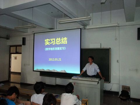 随后,李永川老师针对本次实习中出现的问题、同学们心里的想法、困惑和今后大学生活的方向等问题进行了系统的总结发言。据悉工测1109、1110班在五周的实习中,每个组都已较圆满地完成了实习预定任务,主要有校园平面控制测量(导线测量)、高程控制测量(四等水准测量)、一整幅1:500白纸图和全校园的数字化图,虽然干得很苦很累,但同学普遍表示这五周过的很充实,也很值得。通过这样的实习总结,不但让同学更系统地了解了自己五周实习所做的工作,更为后续学习提供了方向和动力。