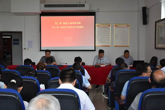 李书记带领大家回顾了中国近代以来土地革命的发展历程和中国共产党领导中国人民全面抗日的过程,并结合中国土地政策的变迁,谈了自己的感受。学习结束后,必赢官方网站老师结合自己的生活谈了对中国土地革命运动和抗日战争的感受。