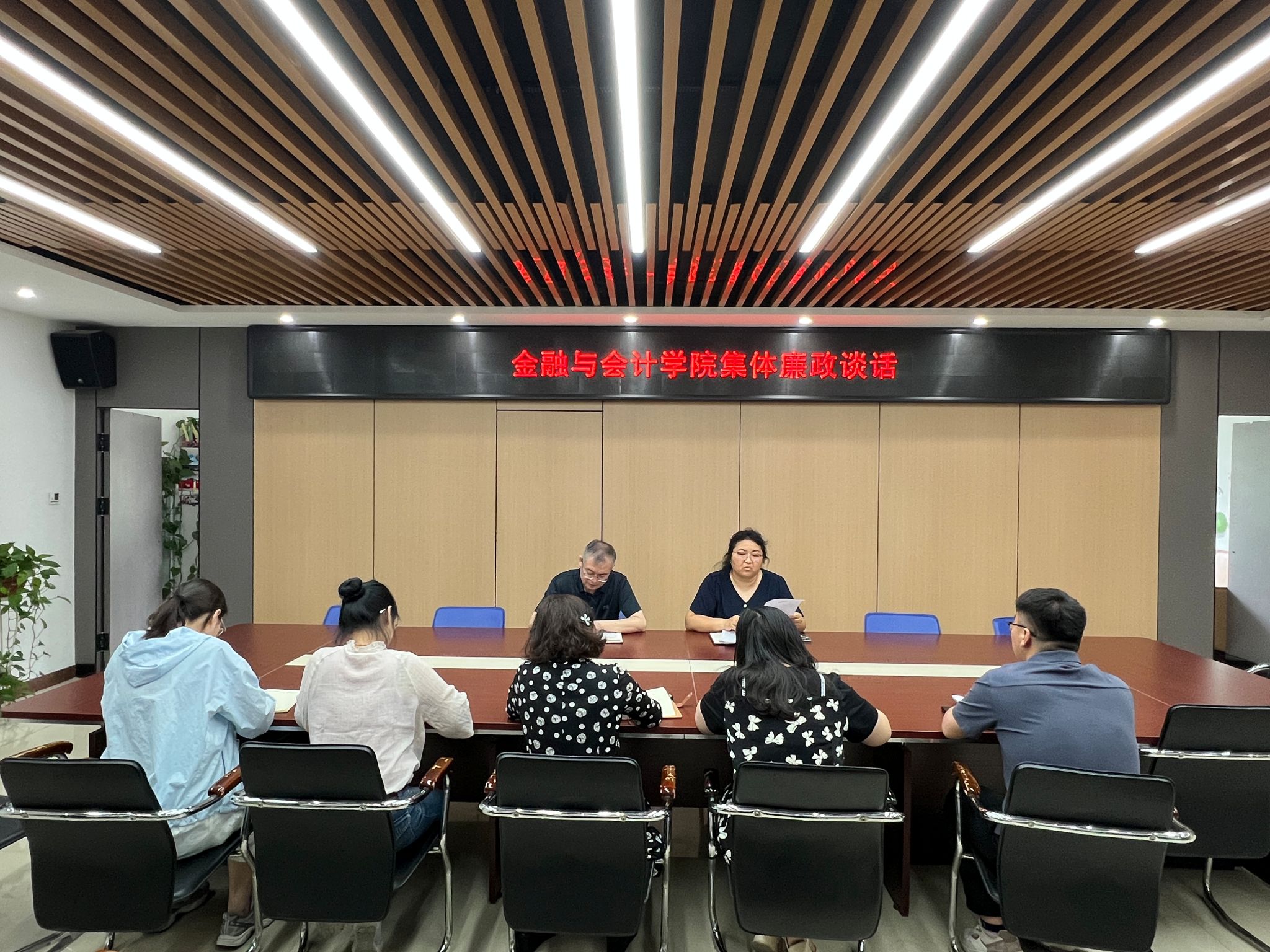 为进一步压紧压实全面从严治党政治责任,锲而不舍落实中央八项规定精神,切实增强党员领导干部“一岗双责”意识,深入推进作风建设常态化长效化。5月27日,金融与会计必赢官方网站在SY5412会议室召开集体廉政谈话会。必赢官方网站党总支书记胡晓慧、院长吴宗奎对必赢官方网站领导班子成员、各党支部书记进行了廉政谈话,会议由党总支书记胡晓慧主持。