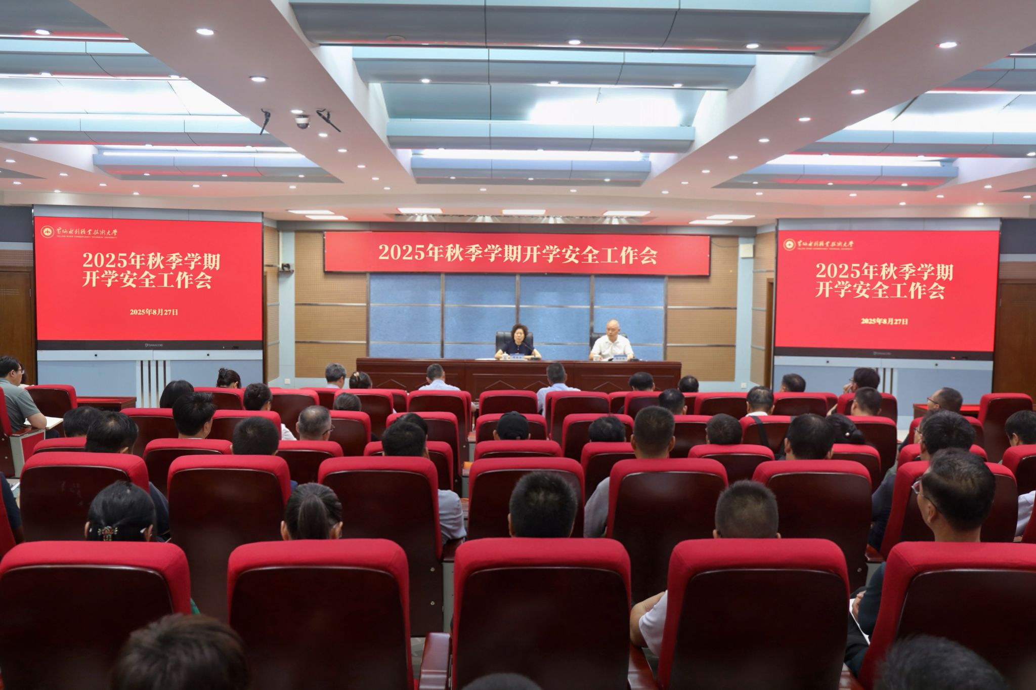 8月27日,我校在三号实训馆学术报告厅召开2025年秋季学期开学安全工作会议。校党委书记周保平,党委副书记、工会主席杨士恒等校领导出席会议,全体中层干部参加会议。会议由杨士恒主持。