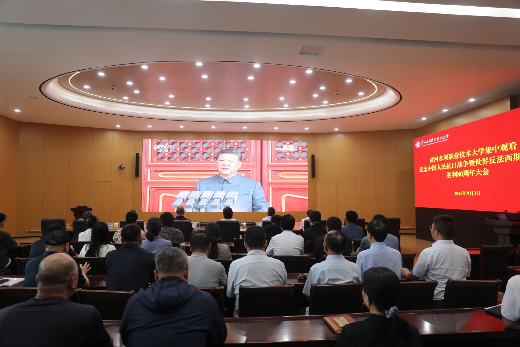 9月3日上午9时,纪念中国人民抗日战争暨世界反法西斯战争胜利80周年大会在北京天安门广场隆重举行。我校师生怀着激动的心情通过各种形式收看纪念大会盛况,深受震撼,倍感自豪。广大师生纷纷表示,要认真学习贯彻习近平总书记的重要讲话精神,倍加珍惜今天来之不易的和平环境,大力弘扬伟大抗战精神,坚守艰苦创业、水利报国的初心使命,为实现中华民族伟大复兴贡献力量。