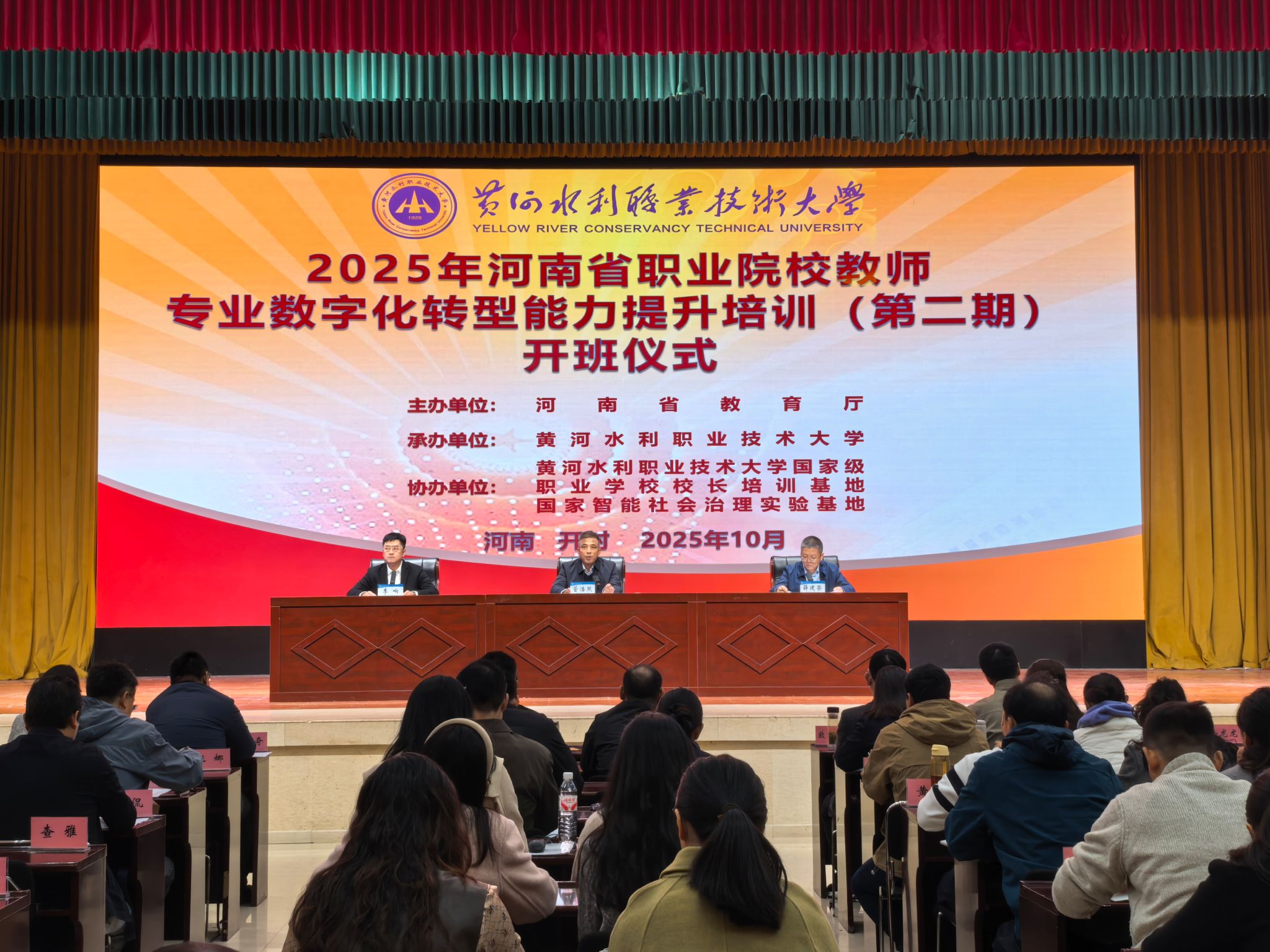 10月11日,由河南省教育厅主办,我校承办的2025年河南省职业院校教师专业数字化转型能力提升培训班(第二期)开班仪式在我校顺利举行。我校副必赢biying(中国)菅浩然出席开班仪式,继续教育必赢官方网站院长薛建荣、国家智能社会治理实验基地常务副主任李响及全体参训学员参加开班仪式。开班仪式由李响主持。