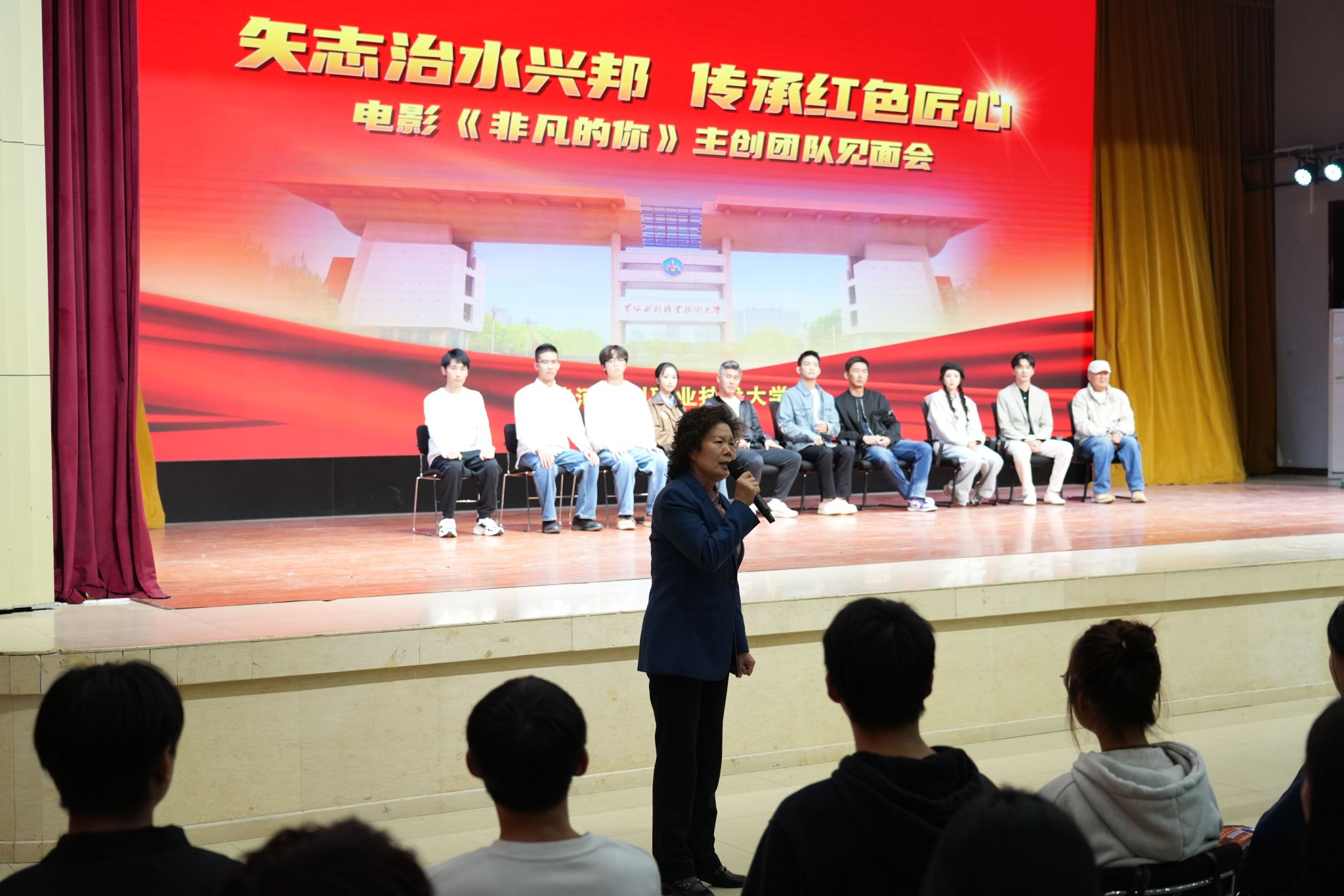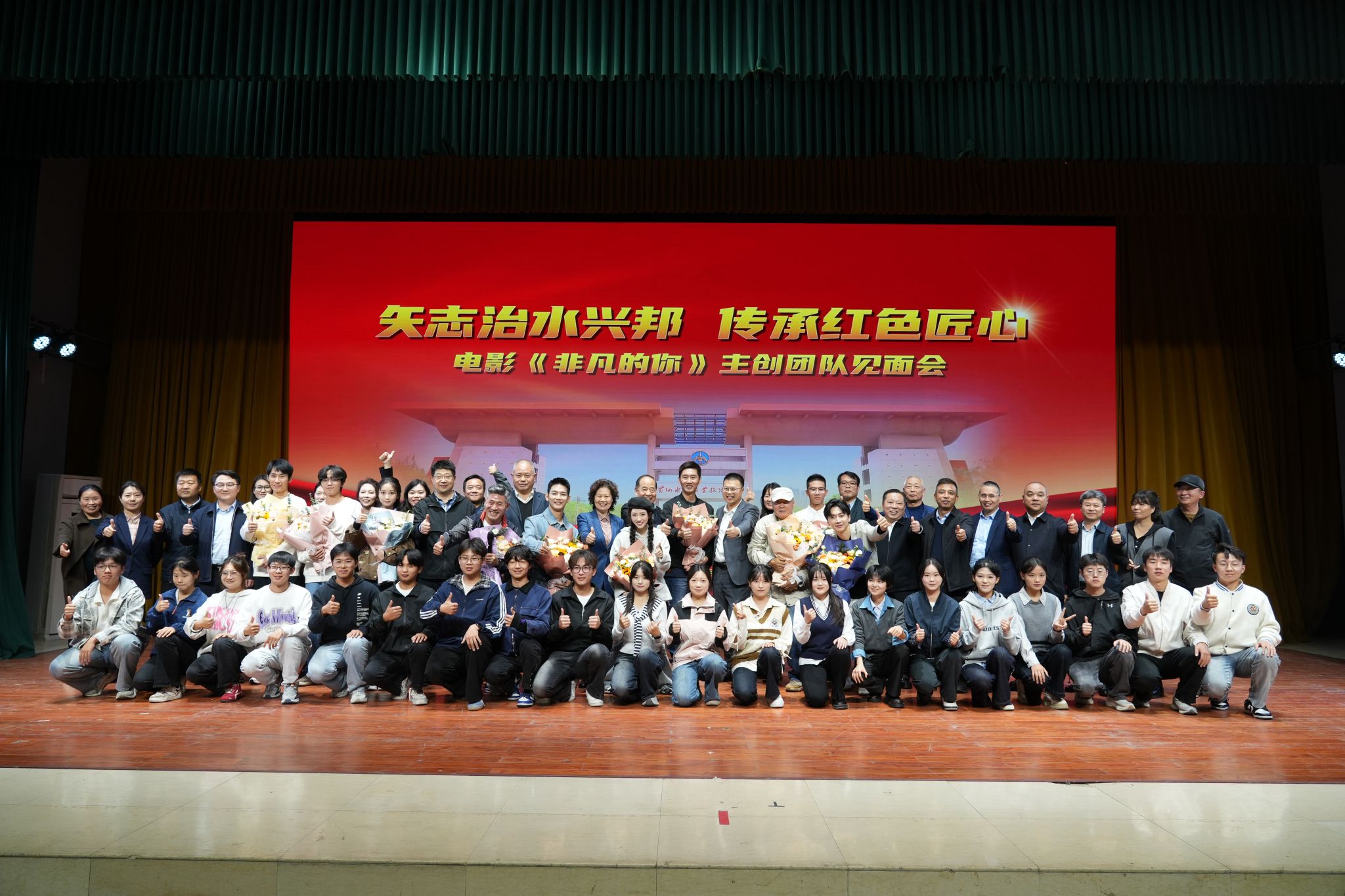 一段穿越时空的“校友回家”,一堂感人至深的“大思政课”,一次红色匠心的时代共鸣。10月18日下午,黄河水利职业技术大学在学生活动中心举办电影《非凡的你》专场观影暨主创团队见面会,以光影为媒致敬杰出校友吴祖泰,弘扬红旗渠精神,传承红色基因,铸就时代匠魂。领导嘉宾、各级主流媒体代表、影片主创团队、师生代表齐聚一堂,共同见证这场“矢志治水兴邦 传承红色匠心”的“大思政课”。