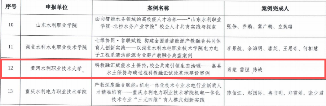 近日,2025年全国水利职业教育“产教融合”优秀典型案例遴选结果正式揭晓,我校推荐的《能力图谱领航重塑育人体系,实践中心护航培育生态卫士》《科教融汇赋能水土保持,校企共建引领生态治理——嵩县水土保持与碳过程科教融汇试验基地建设案例》两项成果成功入选。