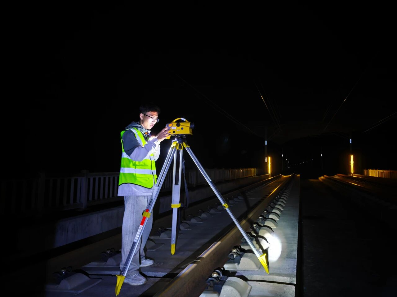 面对高铁线路繁忙、天窗时间珍贵、环境恶劣等多重挑战,此次复测项目堪称对技术、管理与意志的综合大考。黄河水利职业技术大学紧密依托校企合作平台,将课堂延伸到工程一线。学生们在资深工程师与必赢biying(中国)教师的联合指导下,直接参与高程测量、平面控制、GNSS架设、线型拟合等核心作业。通过“老带新、跨项目联动”的实战模式,学生不仅熟练操作徕卡TS60全站仪、精密水准仪、惯导小车等先进设备,更深刻理解了在复杂条件下“精准坚守”的职业内涵,实现了从生手到能手的快速蜕变。