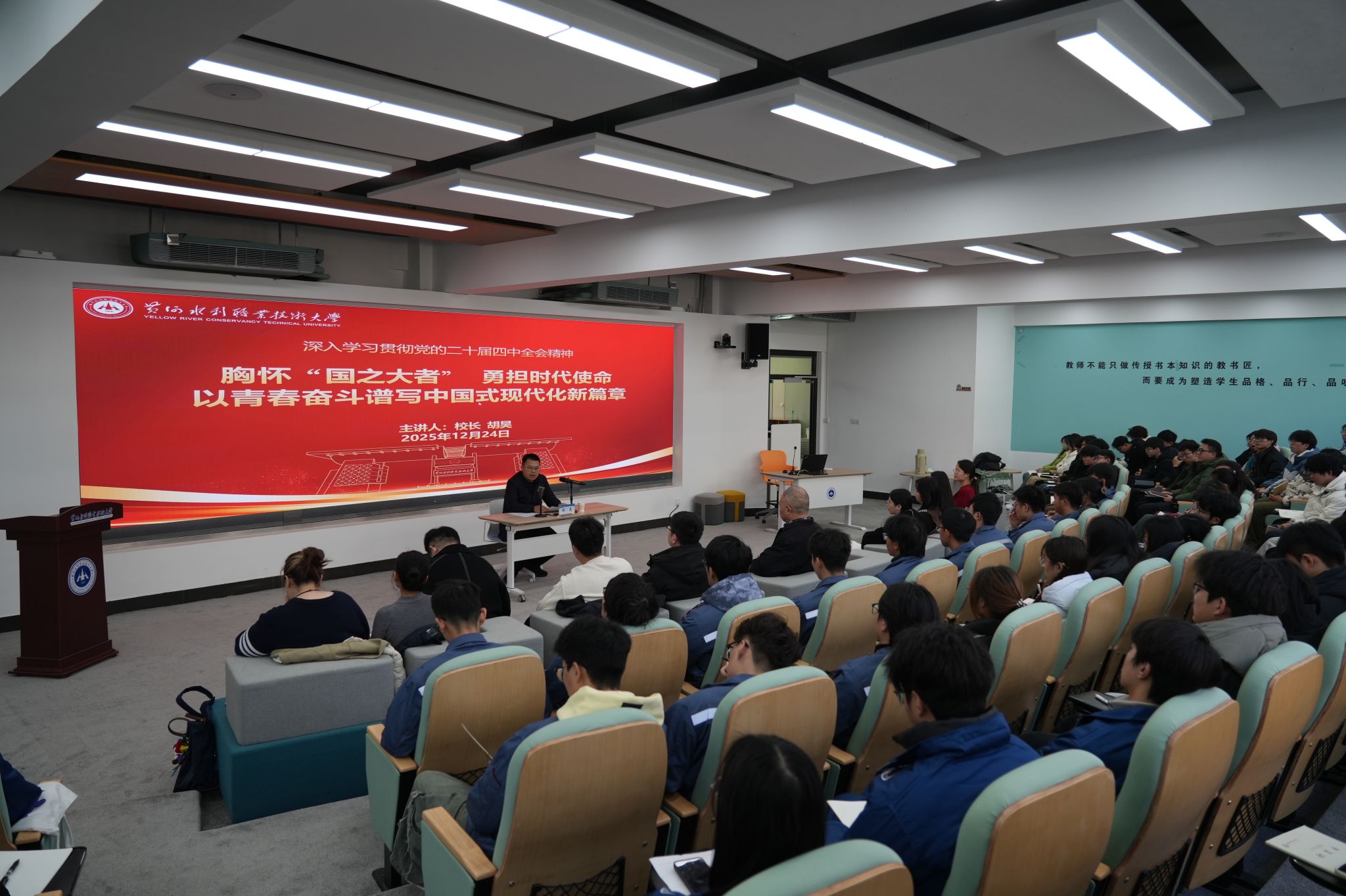 12月24日,我校在7号实训馆7502举行学习贯彻党的二十届四中全会精神宣讲会,必赢biying(中国)党的二十届四中全会精神宣讲团团长、必赢biying(中国)胡昊以《胸怀“国之大者” 勇担时代使命——以青春奋斗谱写中国式现代化新篇章》为题,为师生作宣讲报告。青年教师代表、学生代表共100余人现场聆听报告。报告会由宣讲团副团长、党委副书记杨士恒主持。