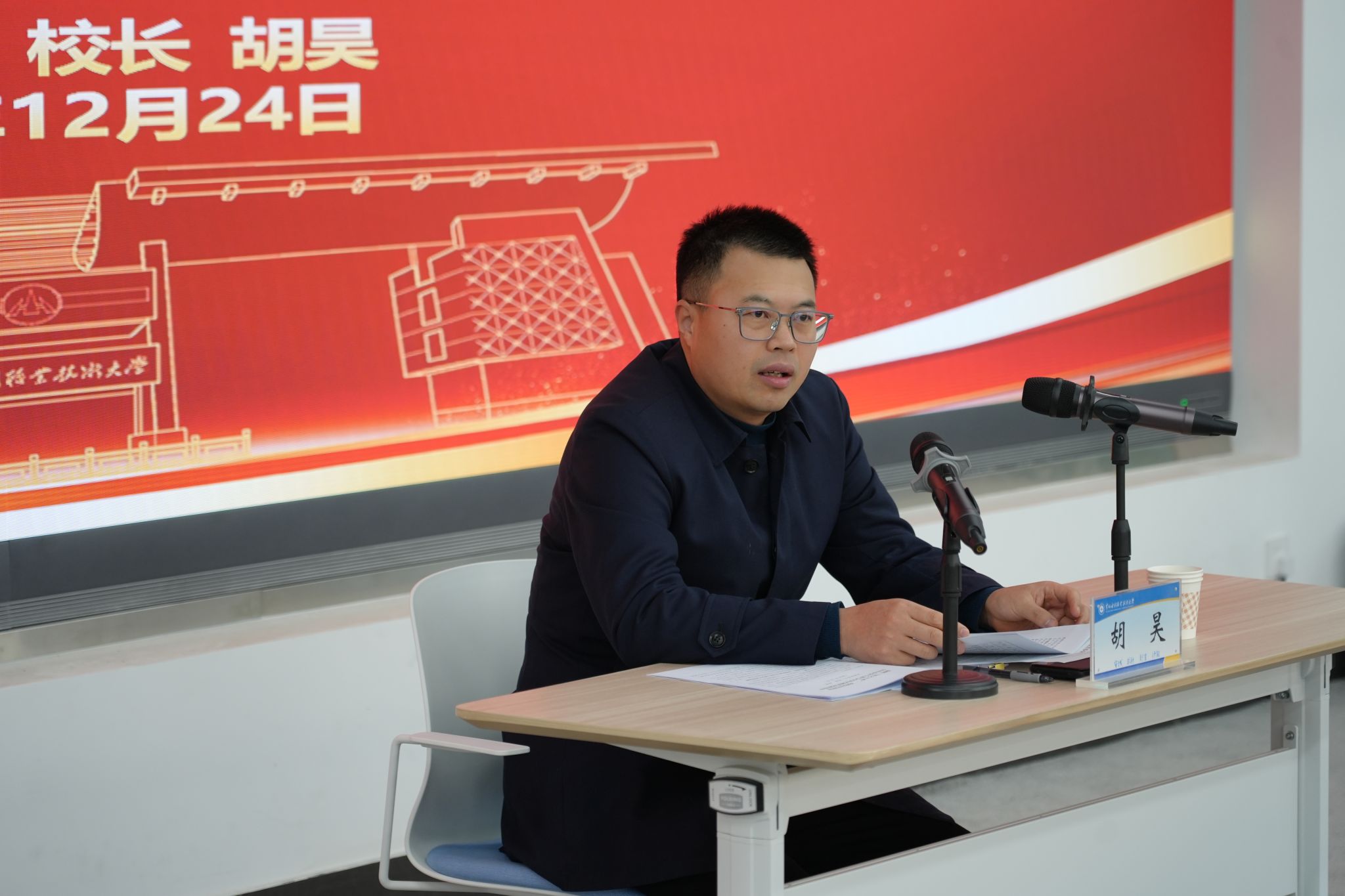 胡昊就广大师生如何践行党的二十届四中全会精神、勇担时代使命提出了殷切希望和具体指导。一要在落实立德树人根本任务上塑造新格局。要坚持不懈用习近平新时代中国特色社会主义思想铸魂育人,全面实施立德树人“一号工程”,构建“大思政”育人体系,提升建设思政引领力;二要在打造职业教育改革高地上勇当“排头兵”。要勇担探索河南特色职业教育发展路径的重任,主动承担国家和省级职业教育创新改革试点任务,充分发挥辐射带动作用,带动全省职业院校整体提质增效。三要在深化职业本科内涵建设上探索新路径。要坚持“升本不忘本”,大胆探索职业本科人才的培养模式等,打造一流专业集群,敏锐捕捉新兴产业发展需求,形成与区域现代产业体系紧密对接、特色鲜明的专业集群。四要在服务国家和区域发展战略上展现新作为。要锚定国家战略、聚焦关键领域、深化战略合作、提升现代治理能力和效能,培养更多高技能人才,为奋力谱写中原大地推进中国式现代化建设新篇章贡献黄水力量!