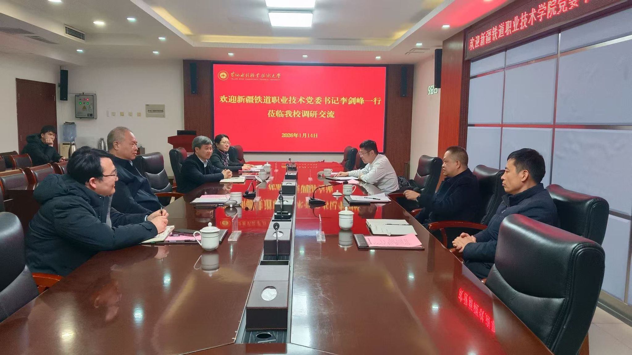 1月14日,新疆铁道职业技术必赢官方网站党委书记李剑峰一行莅临我校进行调研交流。必赢biying(中国)胡昊,党委副书记、工会主席杨士恒,纪委书记刘许亮出席交流活动,相关部门负责人参加交流活动。