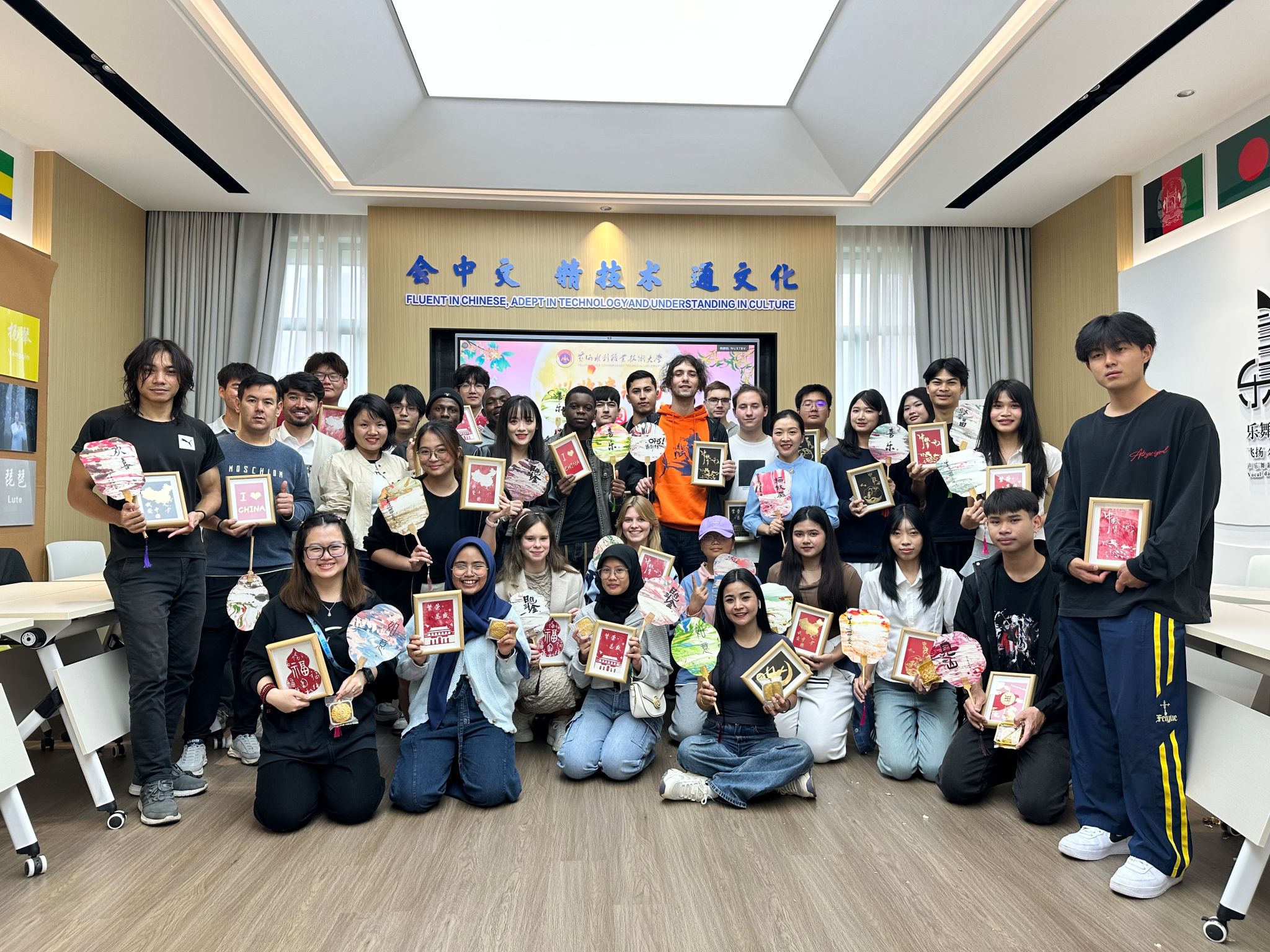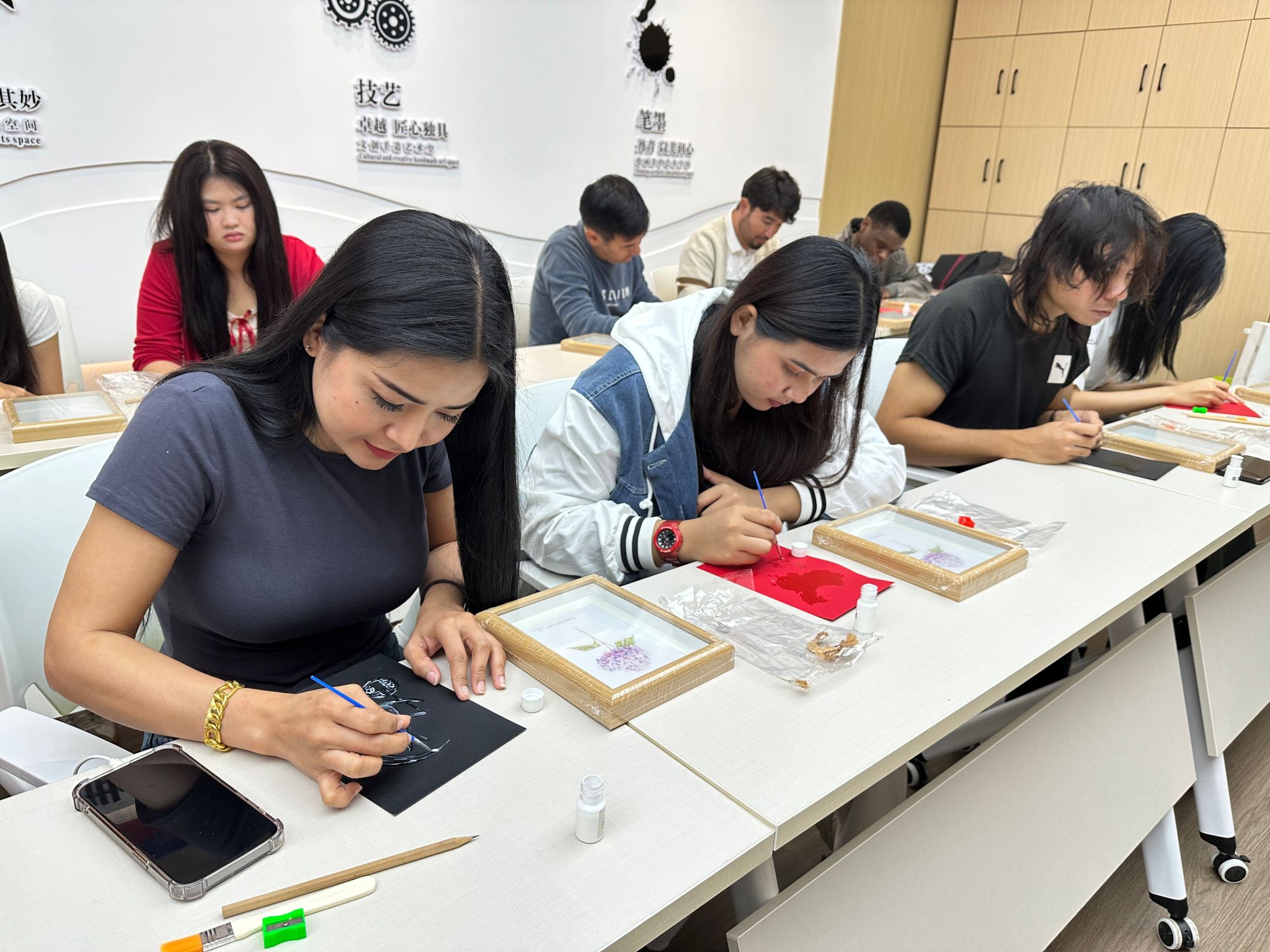 10月5日下午,由国际教育必赢官方网站主办的中外学生“月满中秋,非遗体验”文化交流活动在教学楼7122圆满举行。来自多个国家的留学生与中国学生齐聚一堂,通过漆扇制作、金箔画创作、木版画拓印及月饼分享等环节,沉浸式体验中华非遗技艺,共庆中秋佳节。