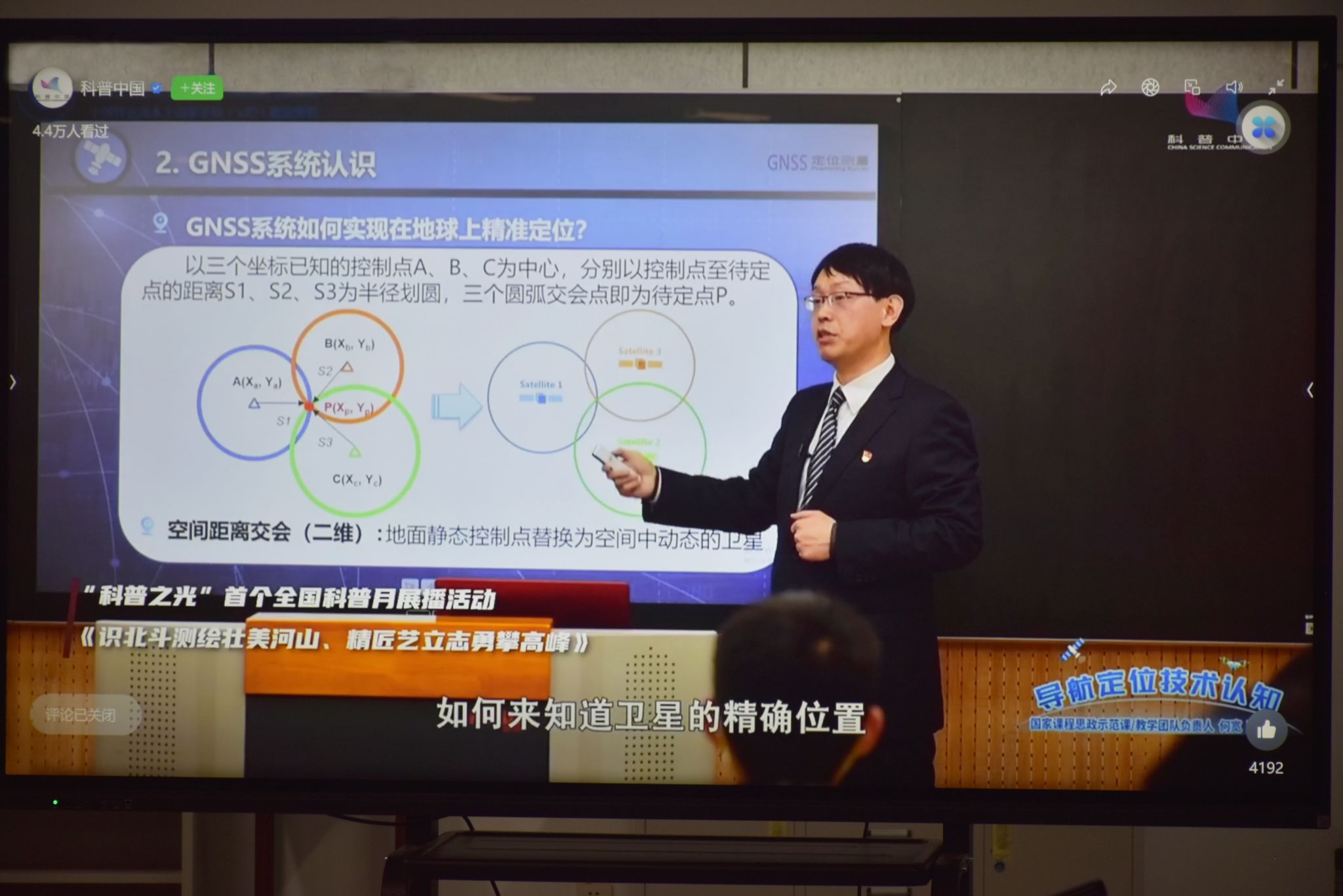 何宽院长以《卫星导航定位系统概述:导航定位技术认识》为题,系统梳理并全景解读导航定位,为观众搭建了清晰的知识框架,生动诠释了北斗系统的战略意义与测绘人的精神追求。他以生动的语言讲述了北斗从无到有、从区域走向全球的非凡发展历程,深入阐释了其在国家安全、交通运输、防灾减灾、精准农业等关键领域的广泛应用,充分彰显了北斗作为国家重要空间基础设施的战略价值,有力激发了观众的民族自豪感与科技自信心。