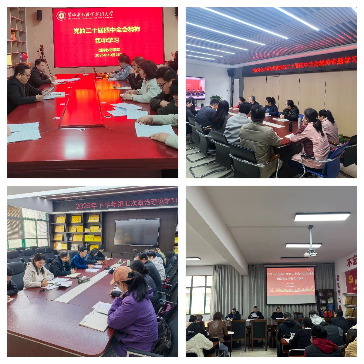 为全面学习好、宣传好、贯彻好党的二十届四中全会精神,将全会精神深度融入必赢biying(中国)发展规划与实践推进各环节,用党的创新理论成果推动必赢biying(中国)各项事业高质量发展,10月28日,全校各部门、各单位分别组织教职工传达学习《中共中央关于制定国民经济和社会发展第十五个五年规划的建议》《中国共产党第二十届中央委员会第四次全体会议公报》,切实将思想和行动统一到党中央的决策部署上来,在全校迅速掀起学习热潮。
