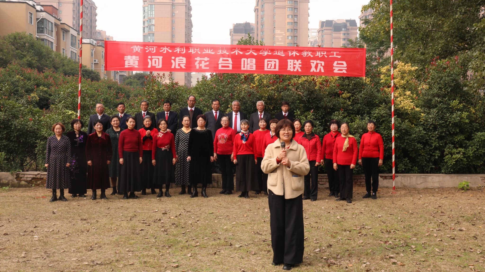 10月29日,正值重阳佳节,我校退休教职工“黄河浪花合唱团”走进里仁居小区,举办了一场别开生面的“庆重阳·献爱心”联欢演唱会,为小区老人们精心呈上了一场温馨四溢的节日盛宴。
