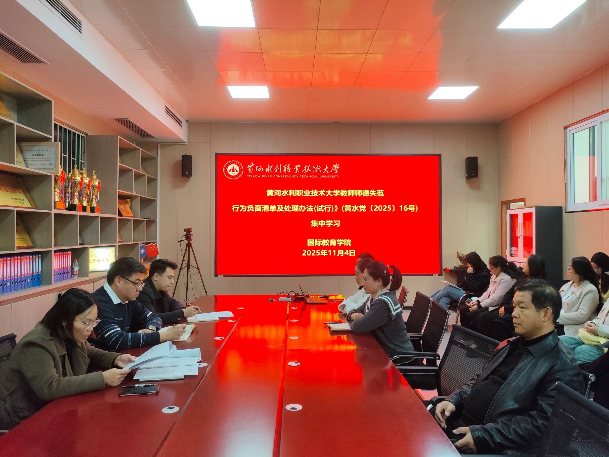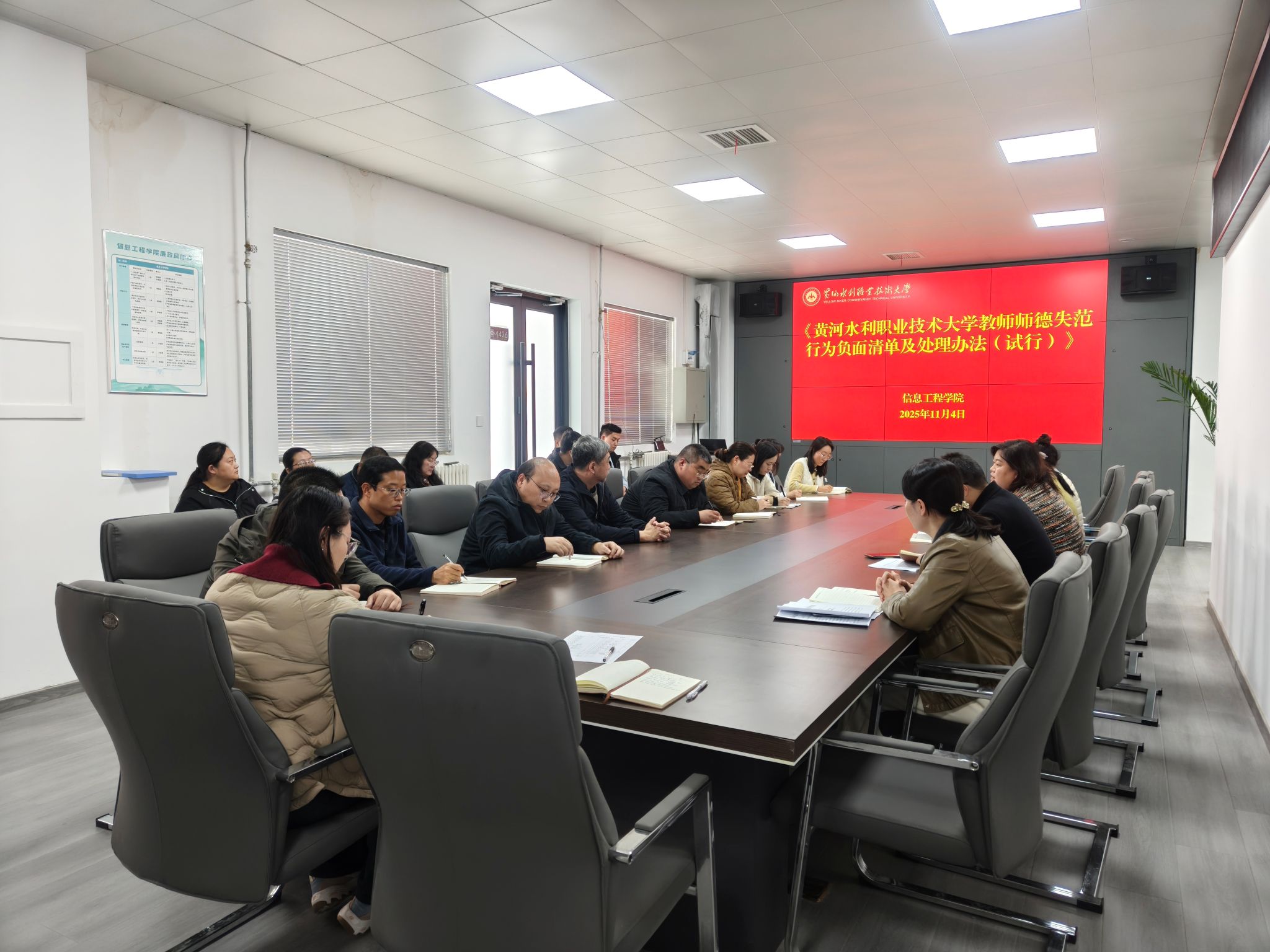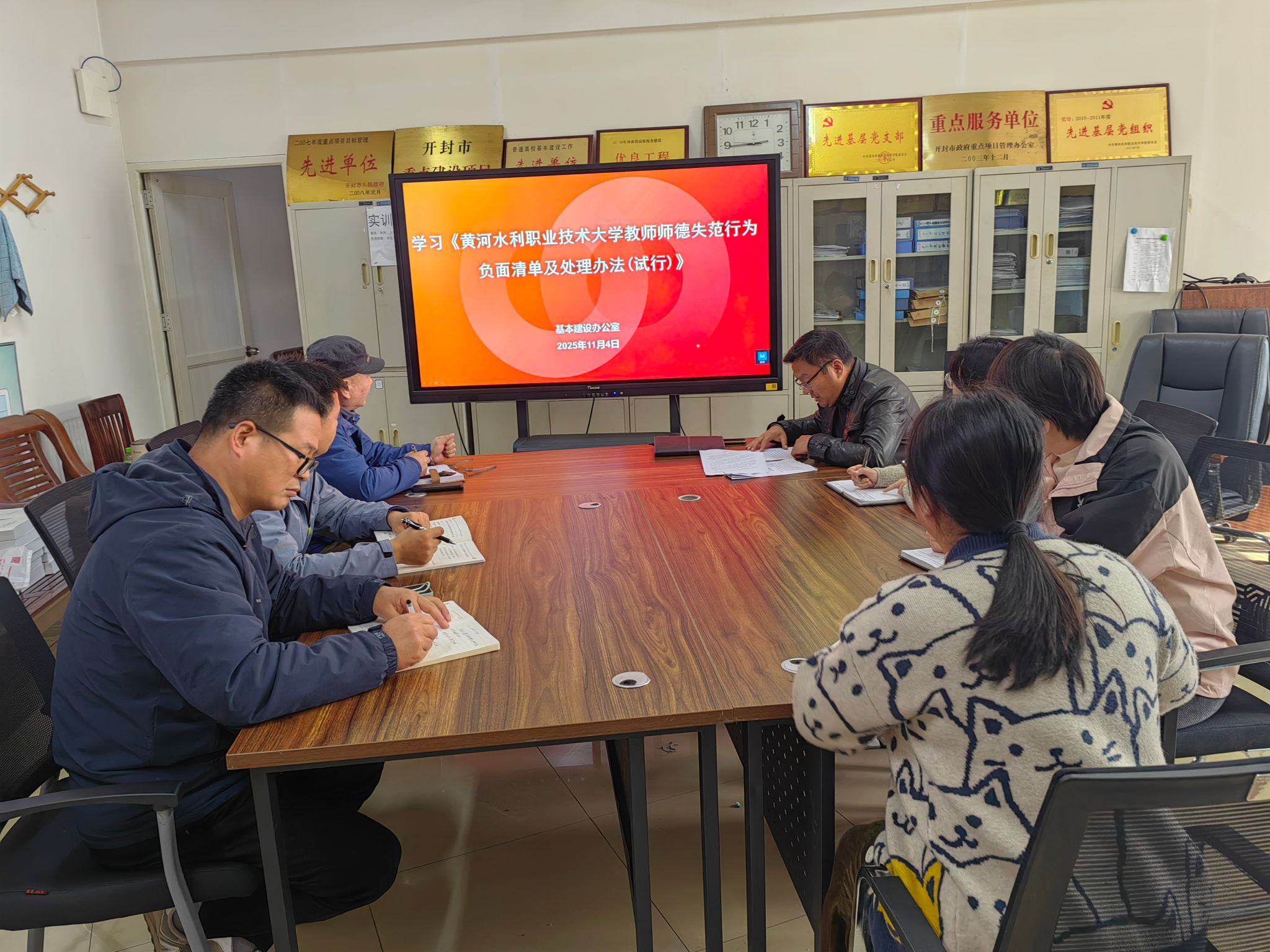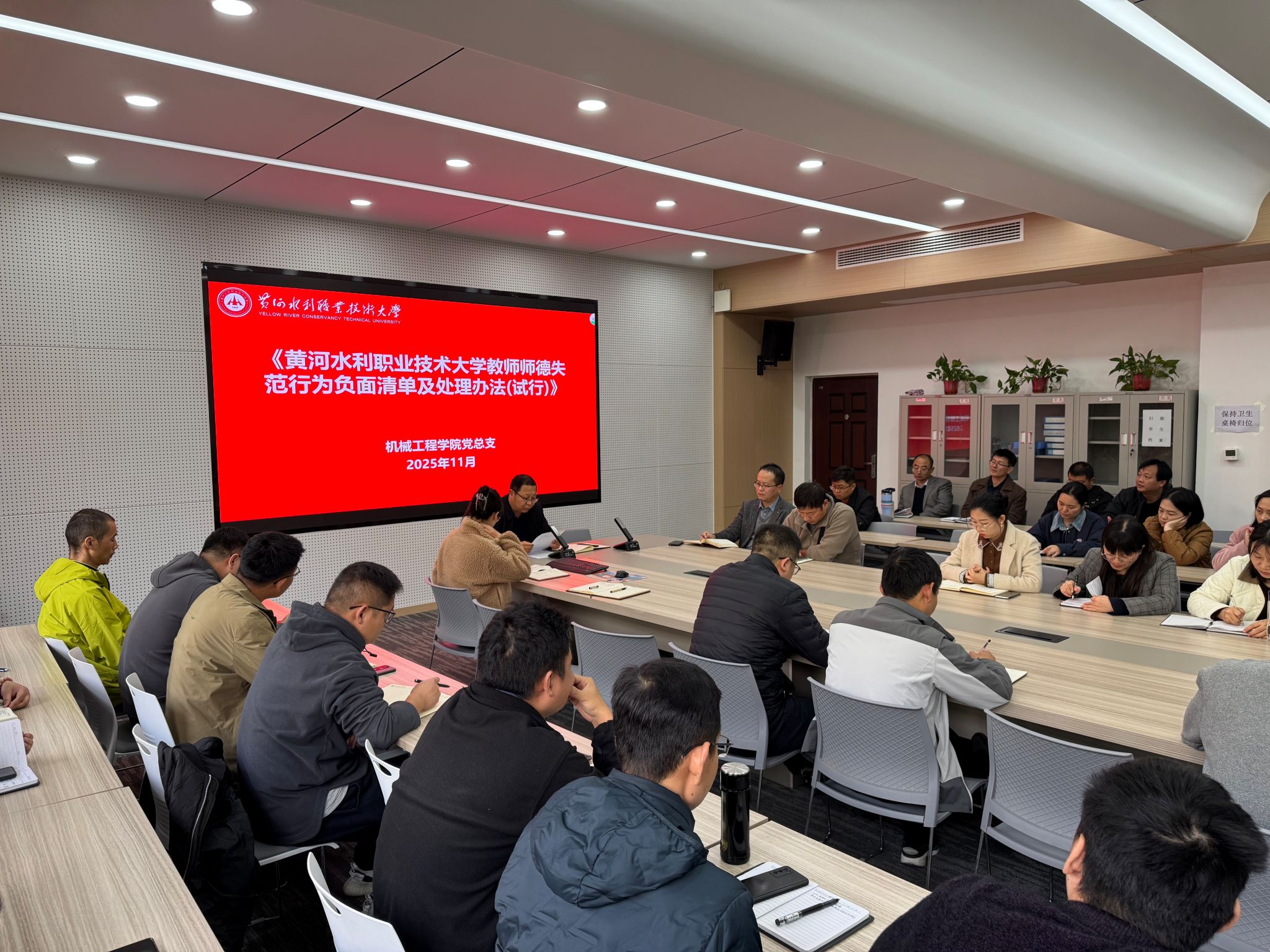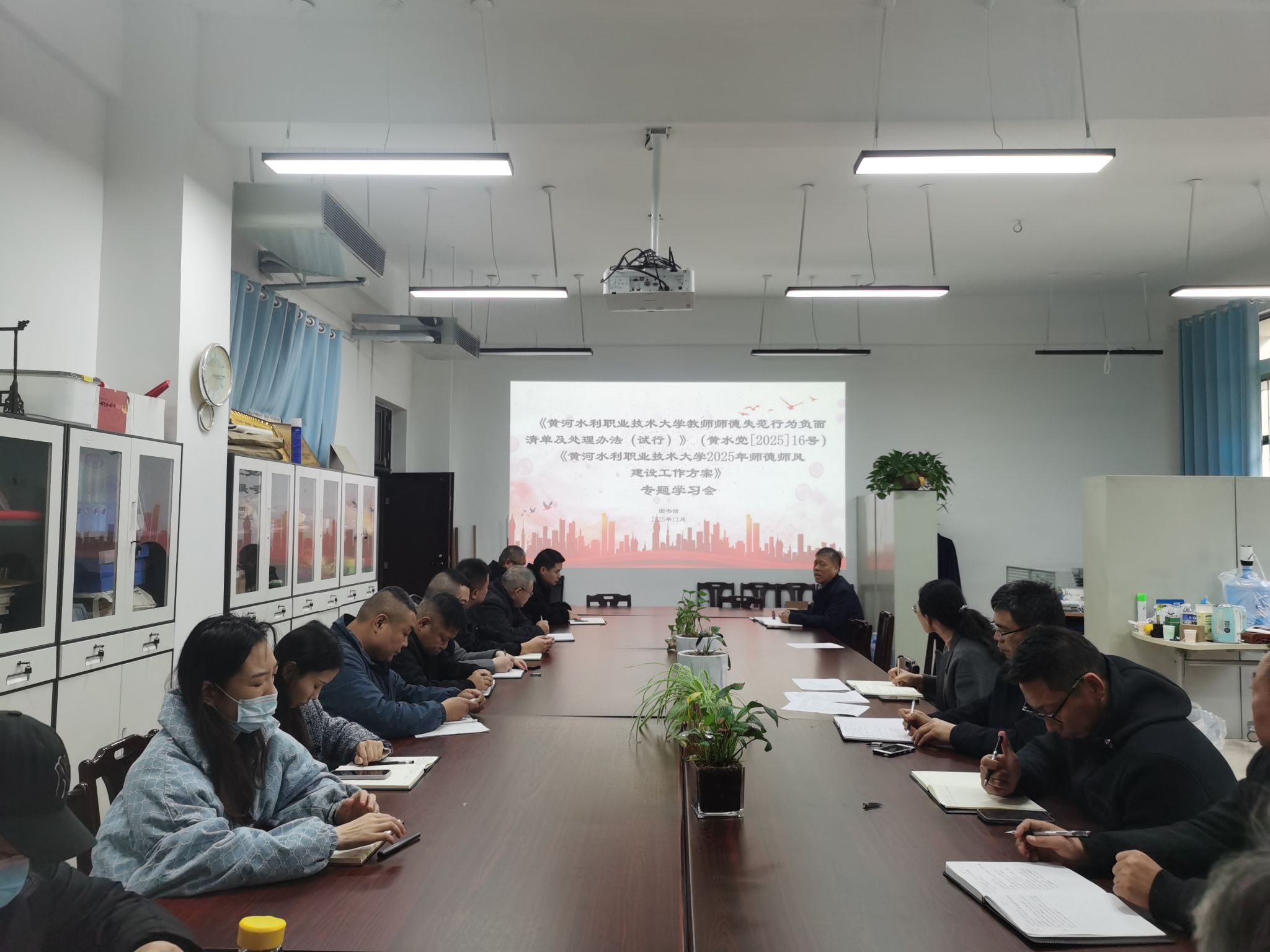 为贯彻落实《黄河水利职业技术大学2025年下半年政治理论学习及思想道德教育计划》学习要求,11月4日,全校各部门、各单位分别组织教职工传达学习《黄河水利职业技术大学教师师德失范行为负面清单及处理办法(试行)》(黄水党〔2025〕16号)和《黄河水利职业技术大学2025年师德师风建设工作方案》,引导全校教师准确把握师德师风建设第一标准的深刻内涵,不断提升师德师风建设水平,努力构建教风清明、校风清正的育人环境,助力必赢biying(中国)高质量发展。(供图:各相关部门)