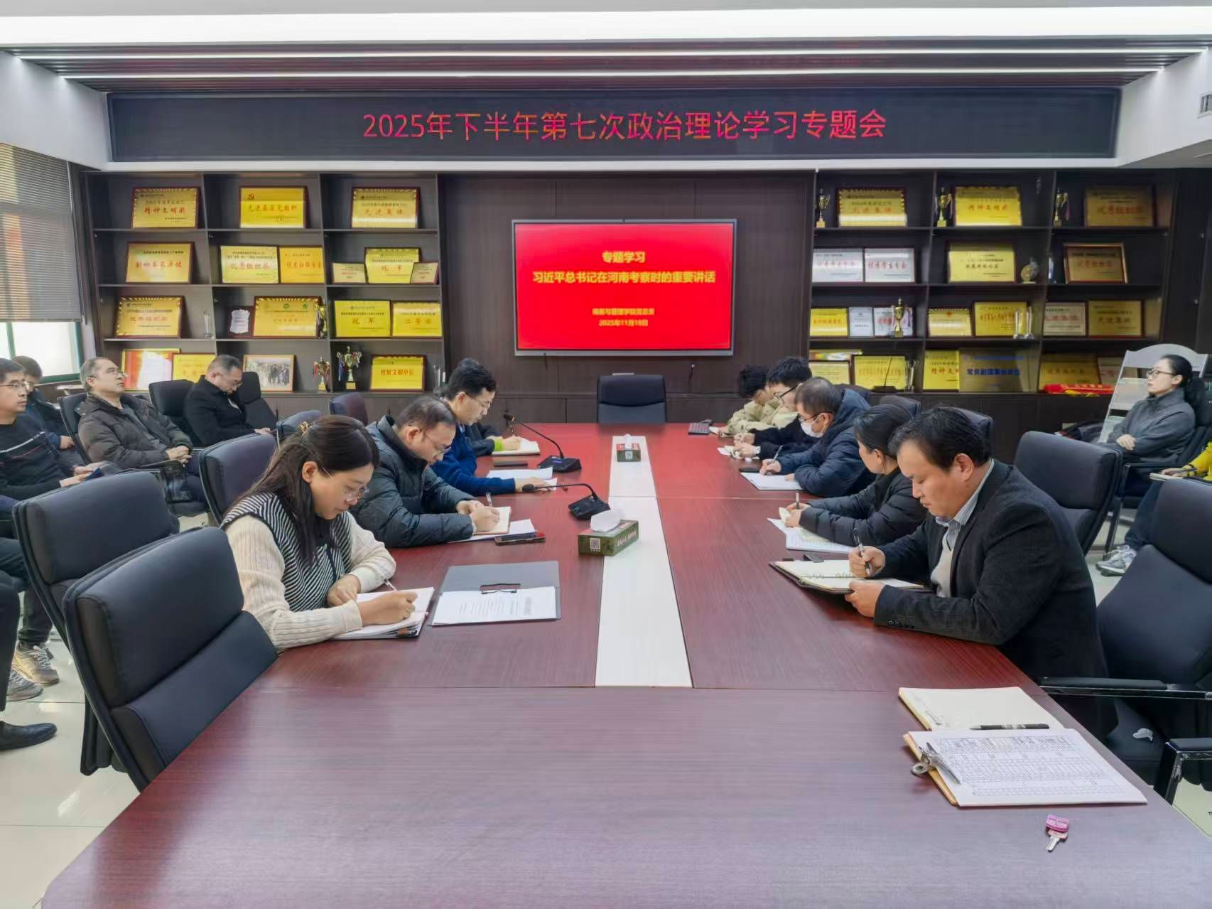 为贯彻落实《黄河水利职业技术大学2025年下半年政治理论学习及思想道德教育计划》学习要求,11月18日,全校各部门、各单位分别组织教职工传达学习习近平总书记在河南考察时的重要讲话和习近平总书记关于河南工作的重要论述,引导全校教师深刻领会习近平总书记重要讲话精神的核心要义和实践要求,自觉将讲话精神融入日常教学和理论研究工作中,引导广大青年学生坚定理想信念,投身强国建设。(供图:各相关部门)
