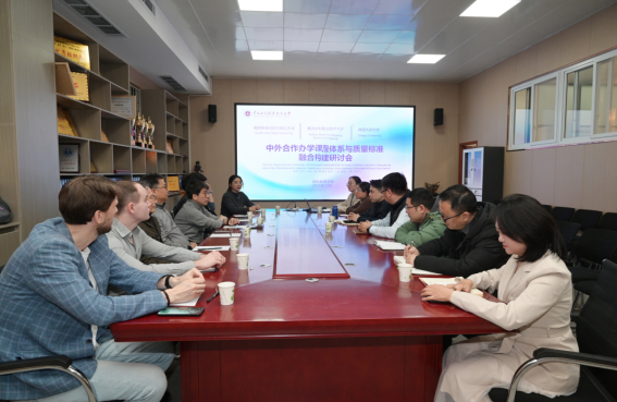 近日,中外合作办学课程体系与质量标准融合构建研讨会在JX7408召开。俄罗斯南乌拉尔国立大学教师团队、韩国大邱大学教师团队,国际教育必赢官方网站院长卫宗超、副院长吴丰以及中外合作办学相关负责教师、各二级必赢官方网站教研室主任共同参会。