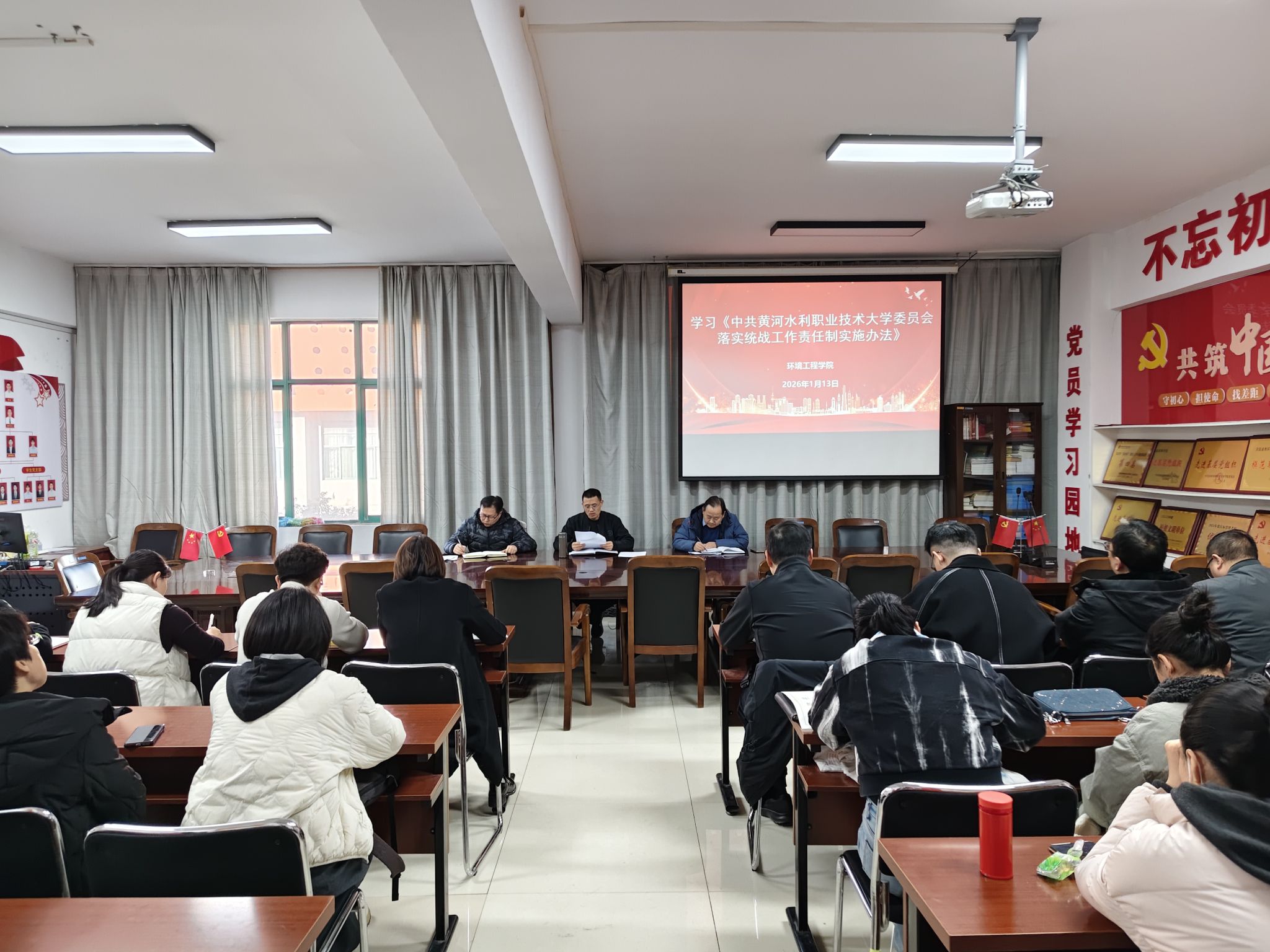 为贯彻落实《黄水2025年下半年政治理论学习及思想道德教育计划》学习要求,1月13日,全校各部门、各单位分别组织教职工传达学习中央统战部《求是》刊文:推动新时代统战工作高质量发展的根本遵循和《中共黄河水利职业技术大学委员会落实统战工作责任制实施办法》,积极引导师生及时跟进学习习近平总书记关于统战工作的重要讲话和重要指示批示精神,在推动统一战线在强国建设、民族复兴伟业中更好发挥凝聚人心、汇聚力量的政治作用,确保我校统战工作沿着正确方向高质量发展。(供图:各相关部门)
