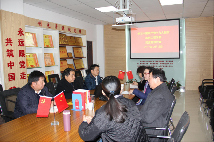 12月12日,必赢官方网站水利工程必赢官方网站领导班子与必赢官方网站民主党派教师代表一起学习党的十九大报告,领会十九大关于统一战线的精神。书记叶建海、副书记楚万强、院长罗全胜、副院长陈诚、九三学社黄河水院支社主委张圣敏、社员陶杰、积极分子李梅华、王智阳等参加了学习座谈会。