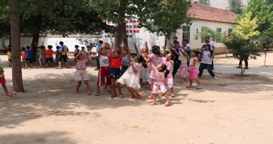 在课余之际,队员们带领孩子们在校园里做起了游戏,丢沙包、踢毽子、摇呼啦圈等等,孩子们在愉快玩耍,队员们也仿佛回到了童年,迅速融入这个大家庭。通过游戏,队员们和孩子们的陌生感逐渐消失,距离快速拉近。大家玩的非常尽兴,看到孩子们一个个灿烂的笑容,成员们虽然满头大汗,但却无比的欣慰和满足。