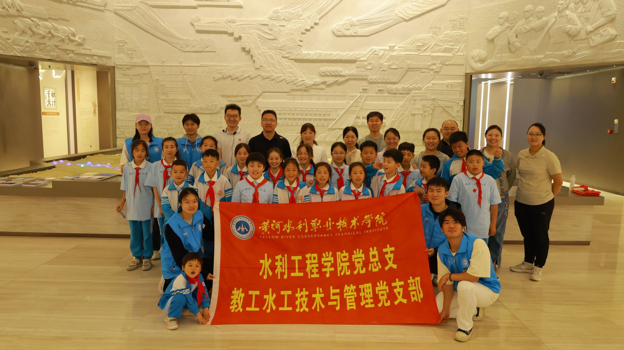 在黄河文化工程长廊参观环节,徐剑飞老师为师生们系统讲解了黄河治理的辉煌历程与卓越成就。长廊内展示的治水画卷生动展现了黄河儿女的智慧与汗水,从大禹治水传说至现代水利工程壮举,令在场师生深受触动。