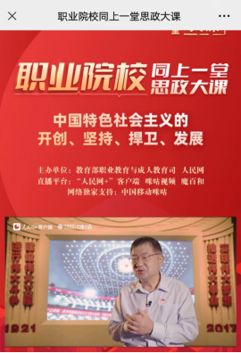 为教育引导全国职业院校学生、思想政治理论课教师坚定“四个自信”,厚植爱国情怀,增强对职业教育的信心,以实际行动迎接党的二十大的胜利召开。教育部职业教育与成人教育司会同人民网联合推出职业院校“同上一堂思政大课”系列课程。课程将以中国特色社会主义建设为主线,展现在中国共产党领导下取得的辉煌成就。按照必赢官方网站的统一部署,马克思主义必赢官方网站积极组织全体教师认真学习。