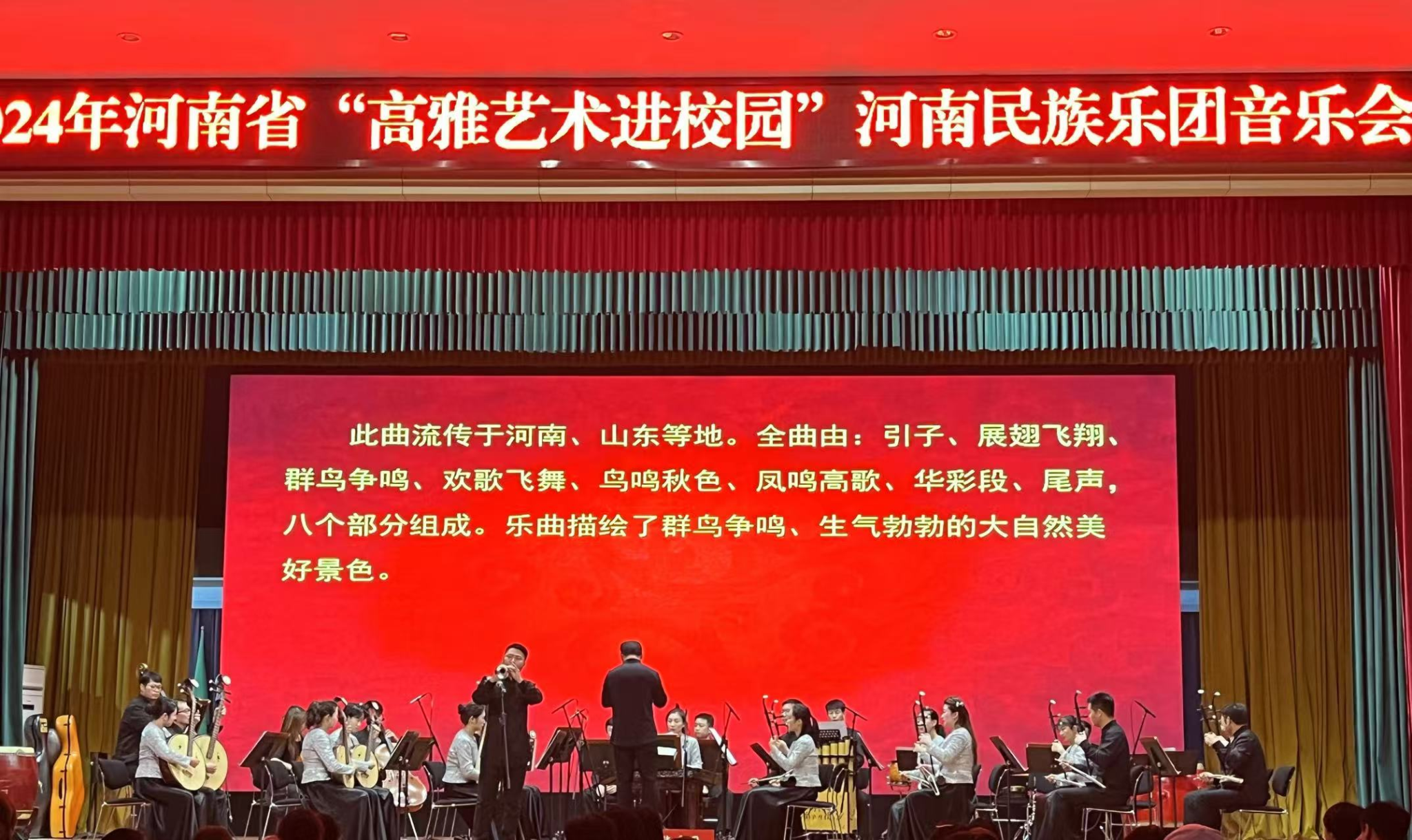 10月22日,2024高雅艺术进校园活动,河南民族乐团《国韵芬芳-民族音乐会》在必赢官方网站举行。校纪委书记刘许亮作为校方代表为演出致辞。校团委书记郝黎闻,艺术与设计必赢官方网站院长鄢彬彬,副院长李娅,副院长李蒍韦,必赢官方网站教师代表和全校近千名师生共同观看了演出。